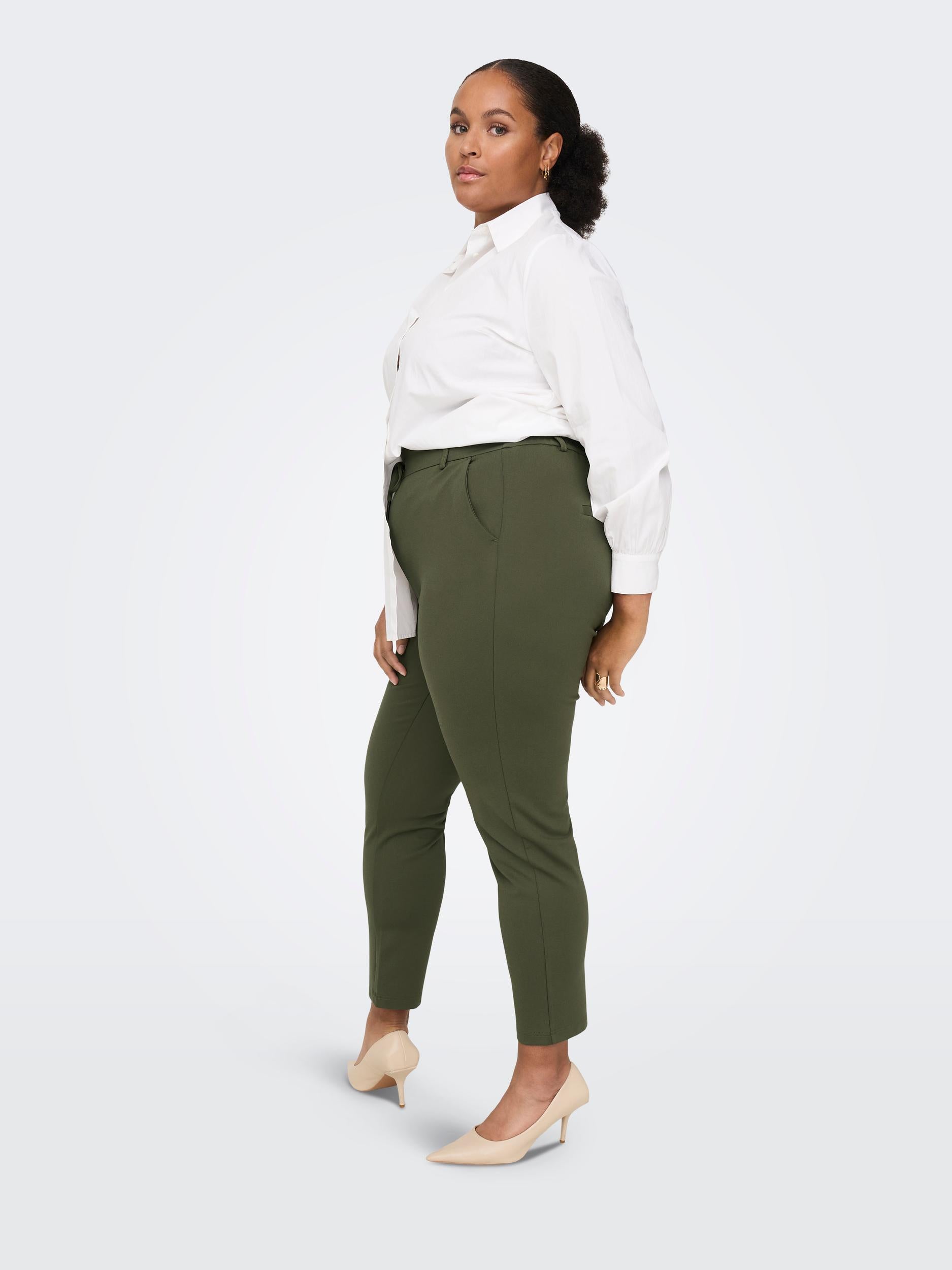 ONLY CARMAKOMA Hose 'Goldtrash Life' in Dunkeloliv